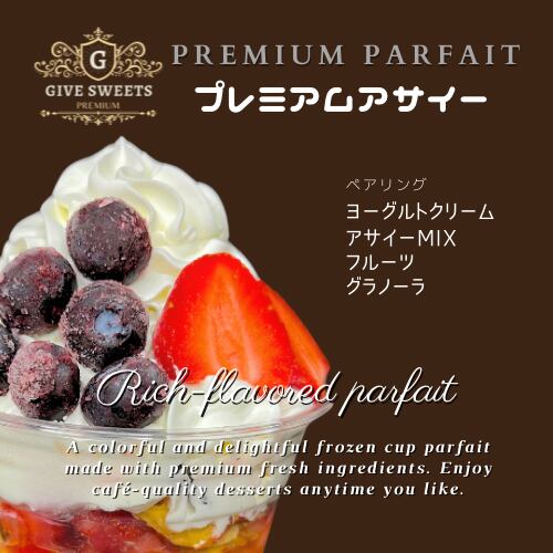 【4個】業務用冷凍 アサイーグリークパフェが登場です!贅沢にアサイーとクリーミーなグリークヨーグルトを生クリームと混ぜ合わせた特別なパフェです。フルーツと濃厚なヨーグルトとの相性も抜群で、まるでスイーツの宝石箱のような美味しさを堪能できます。